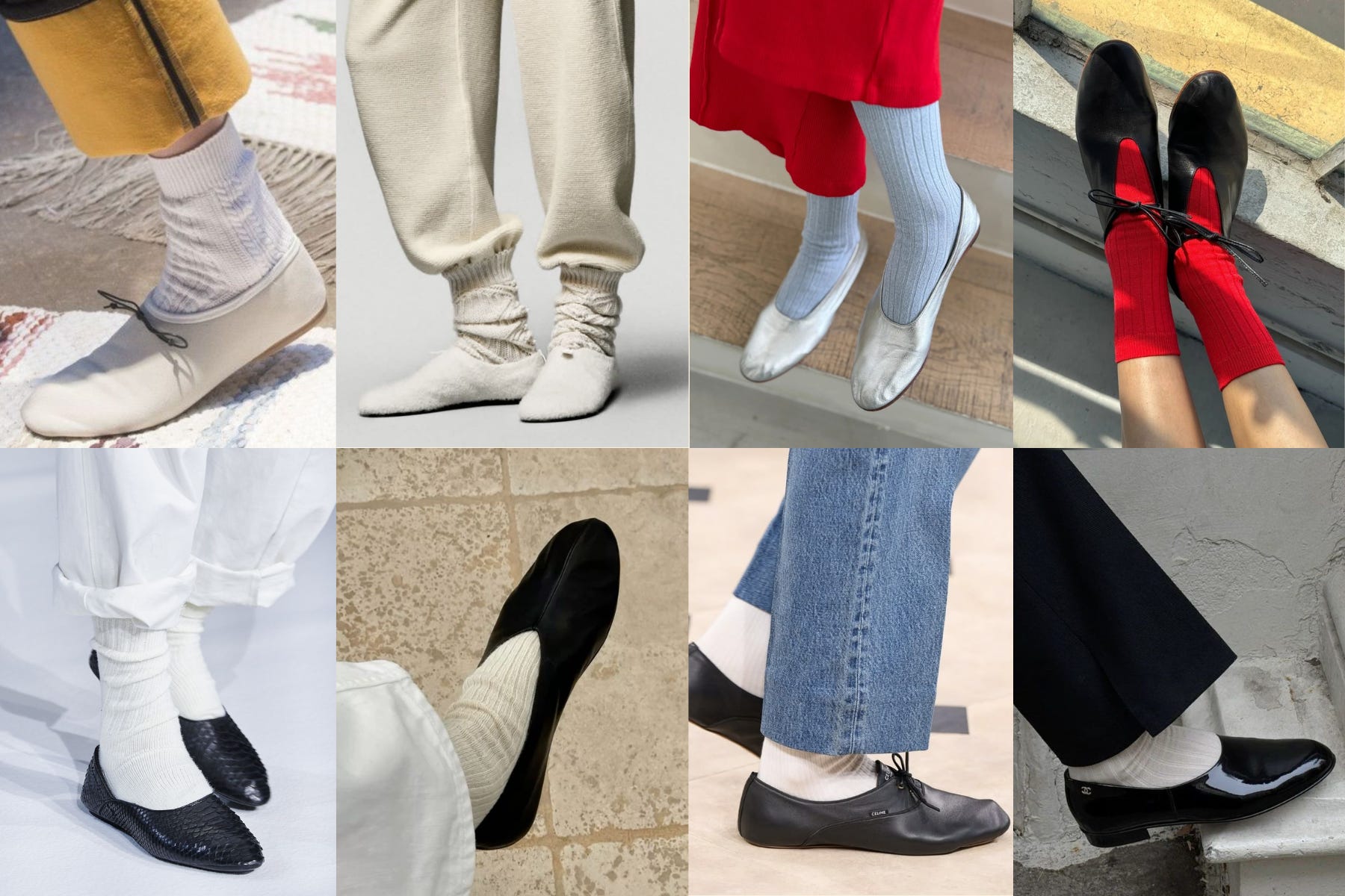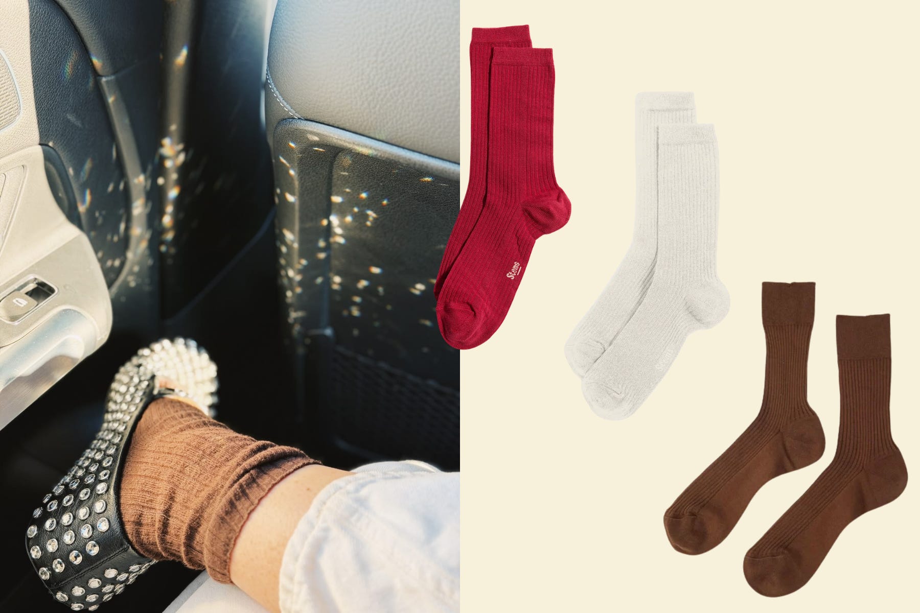 In New York, where we’ve been hit with multiple snowstorms lately, it hasn’t exactly been ideal ballet-flat weather. But on the drier days, I’ve still managed to make them work with a good pair of cozy ribbed socks. Not only is it practical, but I love how it looks. It’s such an easy way to introduce a contrasting color or a bit of texture.