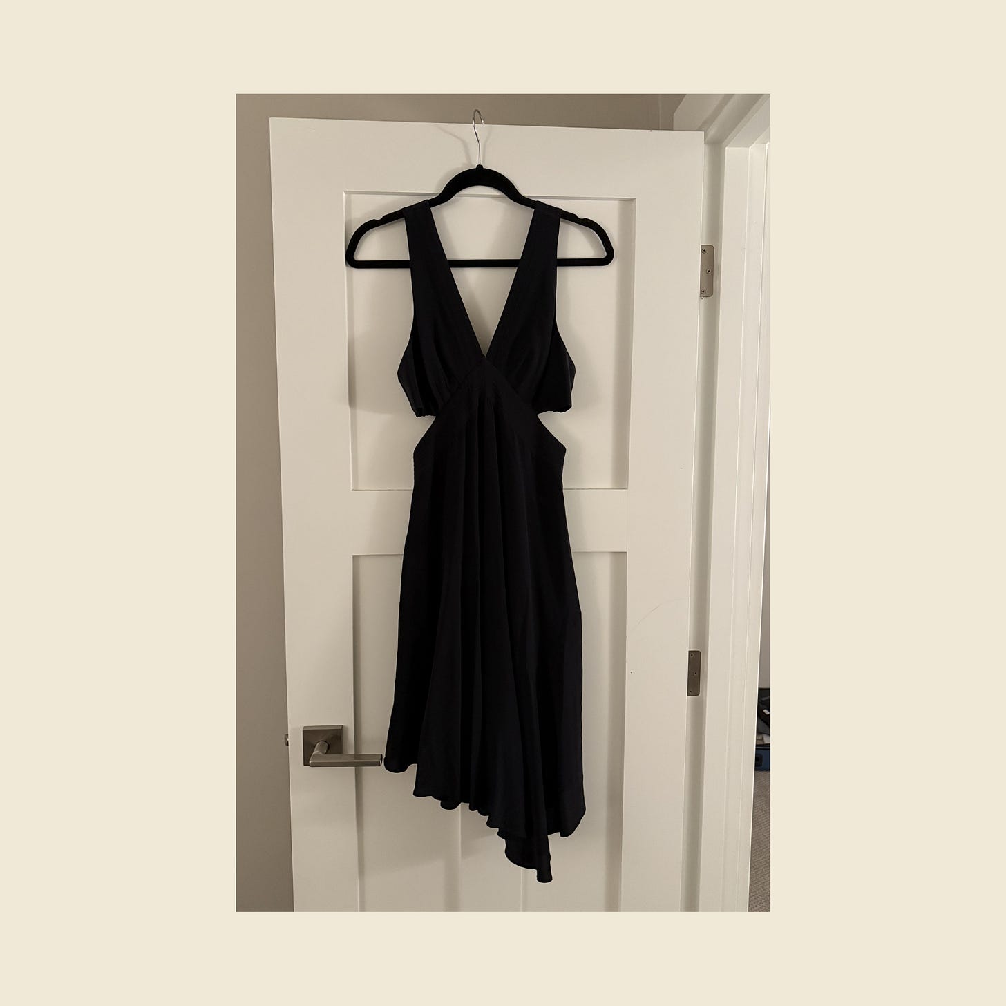I bought this black, silk dress from Club Monaco in 2015 (I haven’t shopped there in ages, but they used to have the best dresses!) It’s kind of a magic dress that doesn’t require a bra (love), is lightweight and comfortable, and somehow always fits perfectly despite all of my body changes over the years. I love the neckline and there are small cut outs on the side that nip my waist in just the right place.