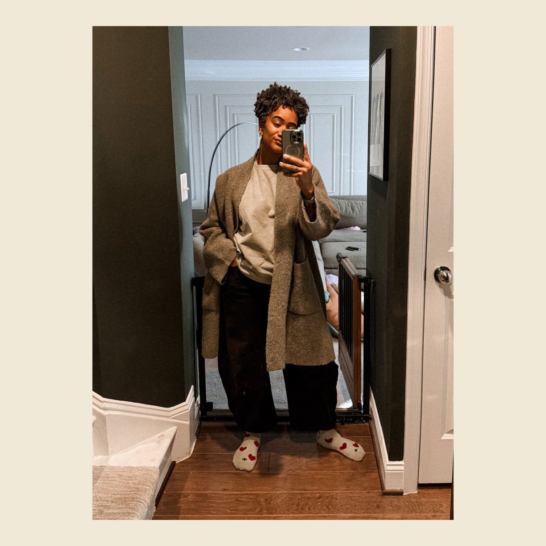 My Lauren Manoogian sweater(s) are my favorite. Every year, I cannot wait to pull them out of storage. The one I'm wearing in the photo has been my go-to this season. I have 5 of her capote coats and cardigans in my collection. LM pieces are my go-to because I don't like wearing big coats. I much rather layer over long sleeves and hoodies. Also, the socks I'm wearing are by Imogene and Willie. I've had them for a long time. They make me happy, have no holes after YEARS, and haven't gotten lost in the wash and gone to sock heaven. In my mind, this makes them my good luck socks. LOL.
